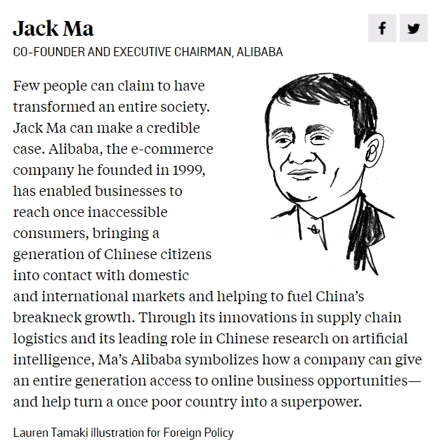 名稱(chēng)【雨露傳媒】馬云入選全球“10大思想者”:他真正改變了一個(gè)社會(huì)    2019-01-21 15:43:50 來(lái)源: 本站